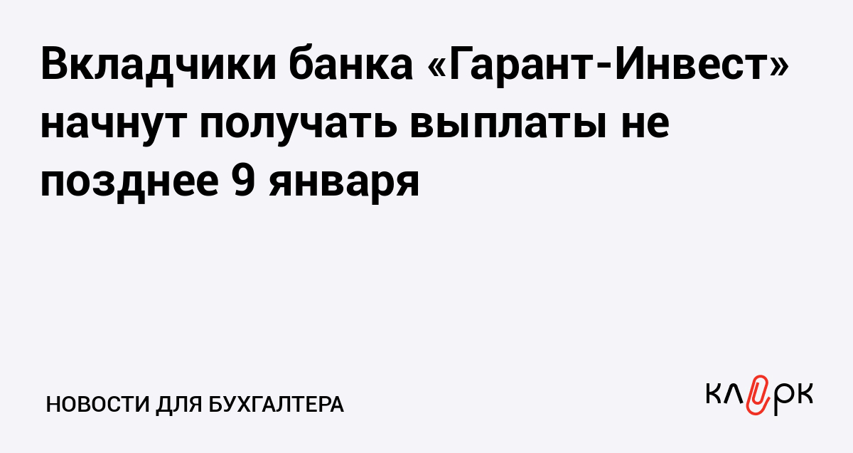 Вкладчики банка «Гарант-Инвест» начнут получать выплаты не позднее 9 января
