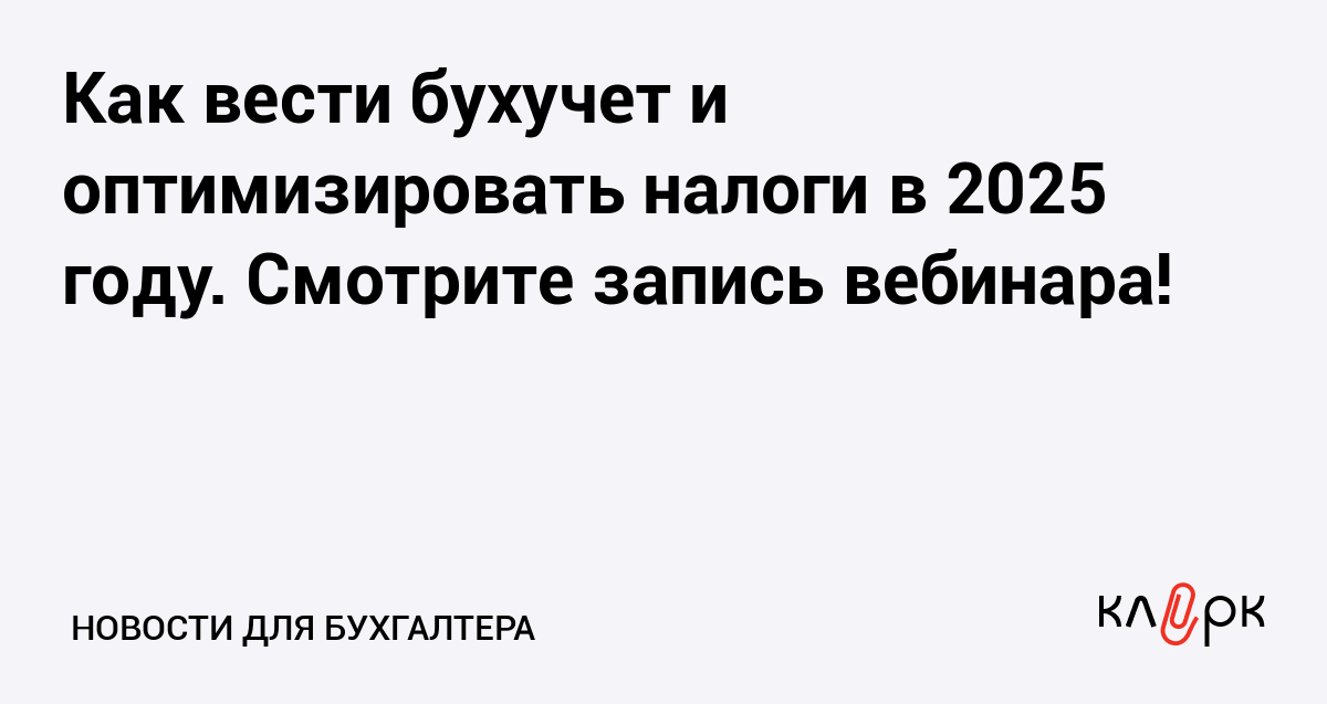 Как вести бухучет и оптимизировать налоги в 2025 году. Смотрите запись вебинара!
