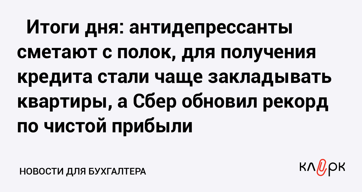 ⚡️ Итоги дня: антидепрессанты сметают с полок, для получения кредита стали чаще закладывать квартиры, а Сбер обновил рекорд по чистой прибыли