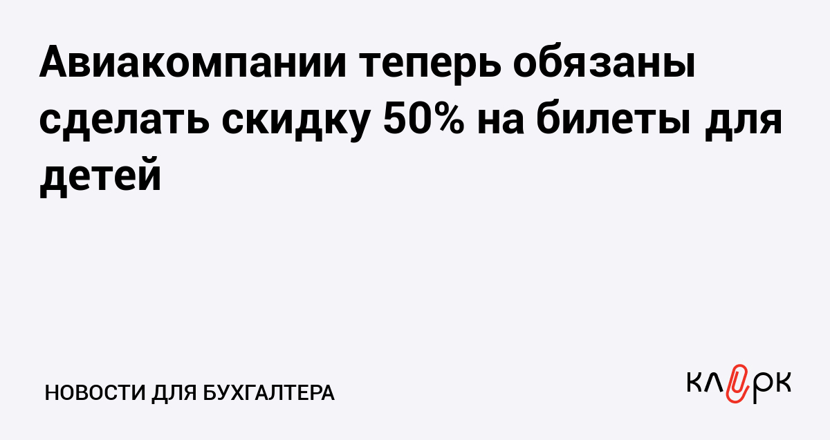 Авиакомпании теперь обязаны сделать скидку 50% на билеты для детей