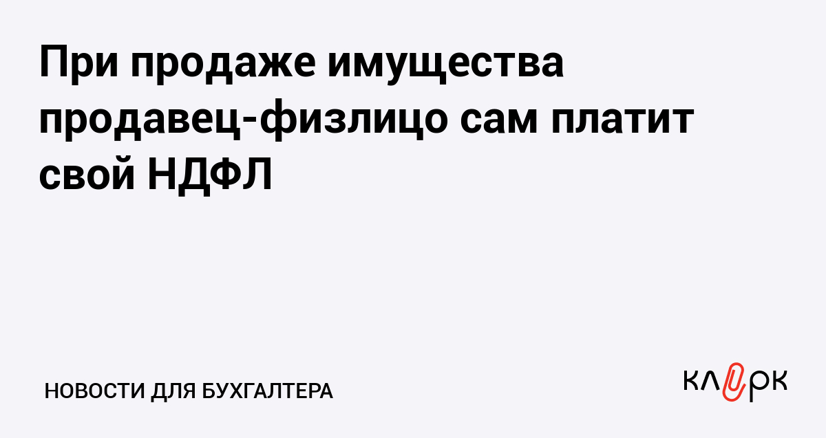 При продаже имущества продавец-физлицо сам платит свой НДФЛ
