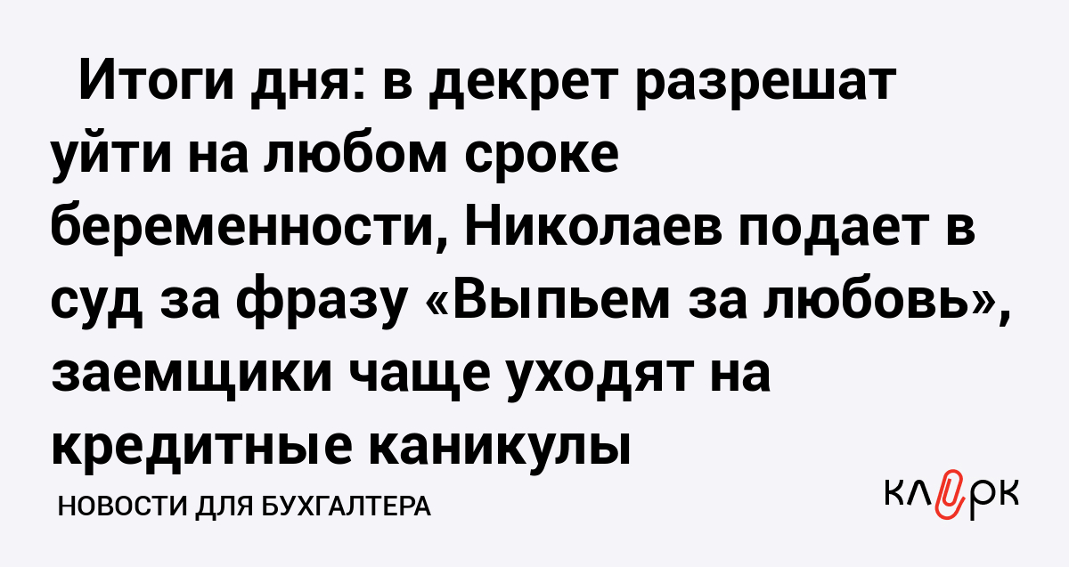 ⚡️ Итоги дня: в декрет разрешат уйти на любом сроке беременности, Николаев подает в суд за фразу «Выпьем за любовь», заемщики чаще уходят на кредитные каникулы