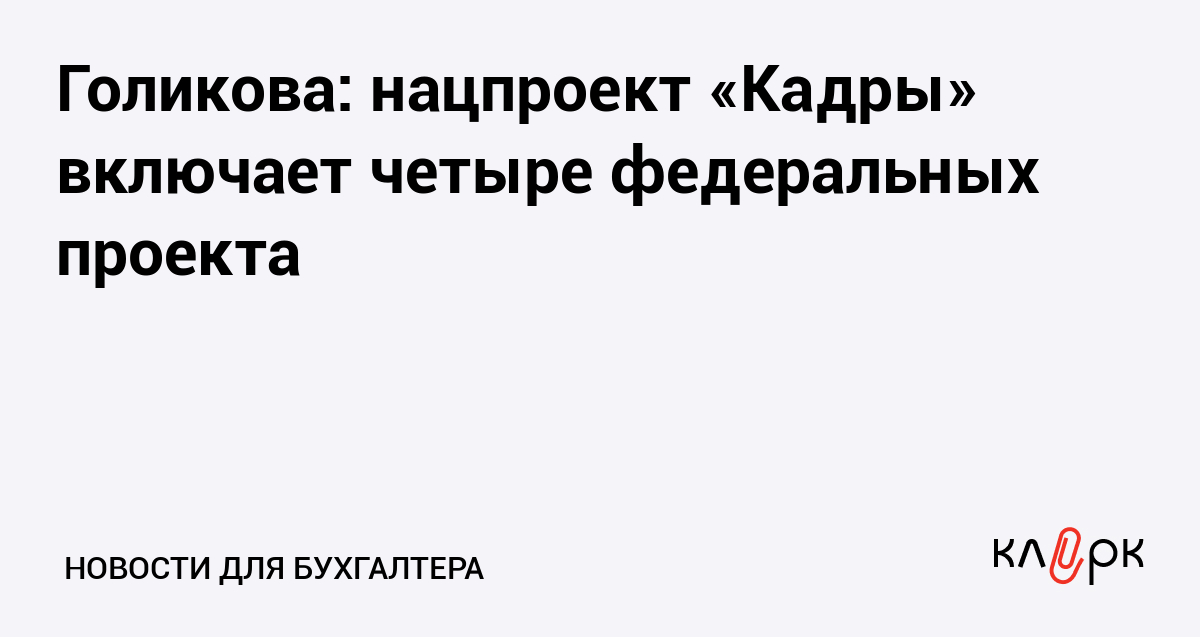 Голикова: нацпроект «Кадры» включает четыре федеральных проекта