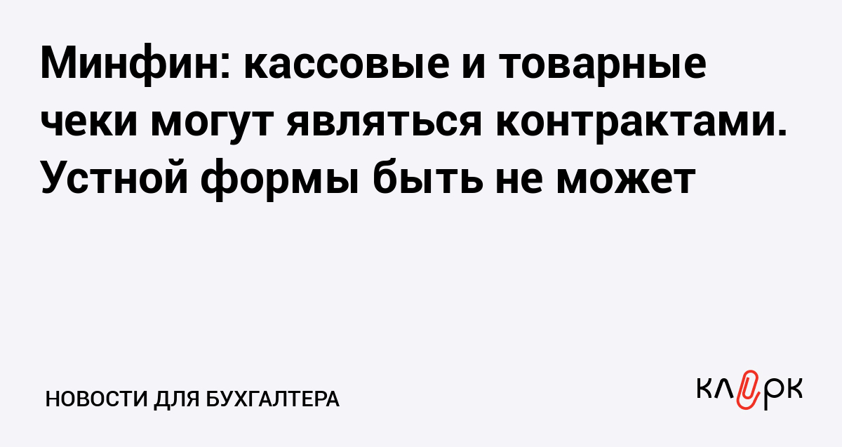 Минфин: кассовые и товарные чеки могут являться контрактами. Устной формы быть не может