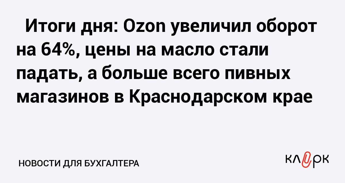 ⚡️ Итоги дня: Ozon увеличил оборот на 64%, цены на масло стали падать, а больше всего пивных магазинов в Краснодарском крае