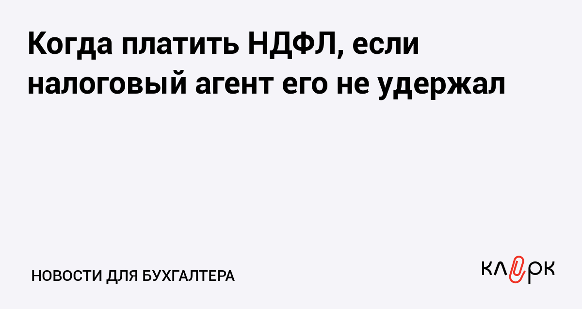 Когда платить НДФЛ, если налоговый агент его не удержал