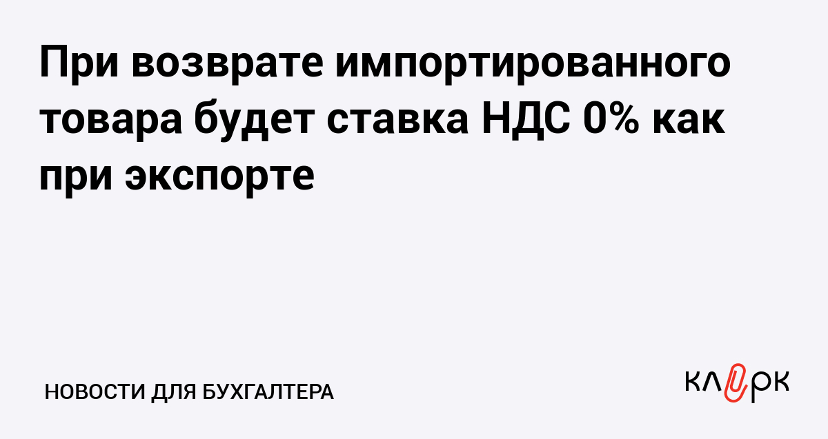 При возврате импортированного товара будет ставка НДС 0% как при экспорте