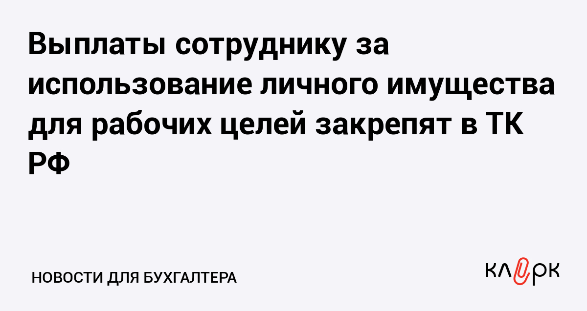 Выплаты сотруднику за использование личного имущества для рабочих целей закрепят в ТК РФ