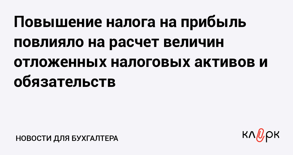 Повышение налога на прибыль повлияло на расчет величин отложенных налоговых активов и обязательств