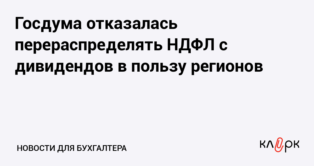 Госдума отказалась перераспределять НДФЛ с дивидендов в пользу регионов