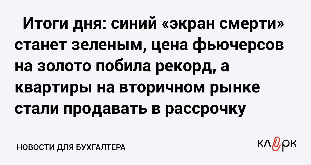 ⚡️ Итоги дня: синий «экран смерти» станет зеленым, цена фьючерсов на золото побила рекорд, а квартиры на вторичном рынке стали продавать в рассрочку