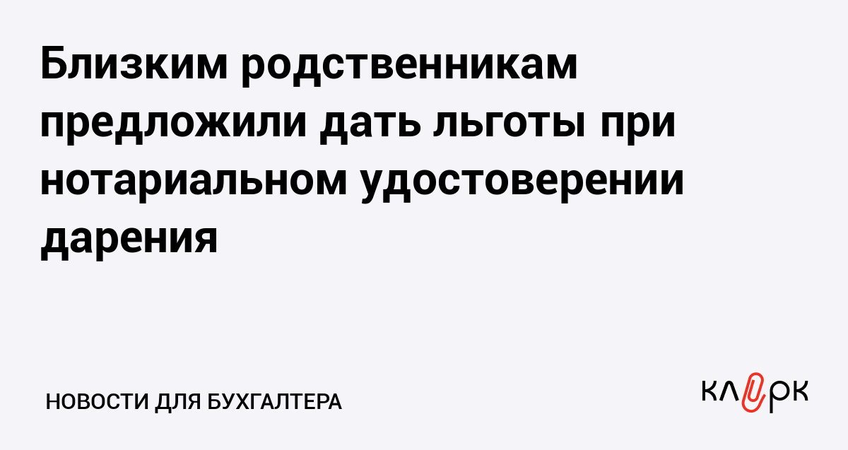 Близким родственникам предложили дать льготы при нотариальном удостоверении дарения