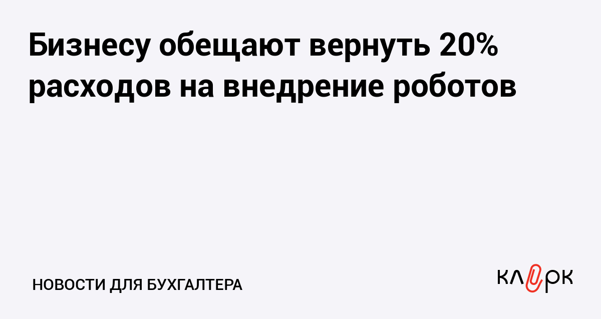 Бизнесу обещают вернуть 20% расходов на внедрение роботов