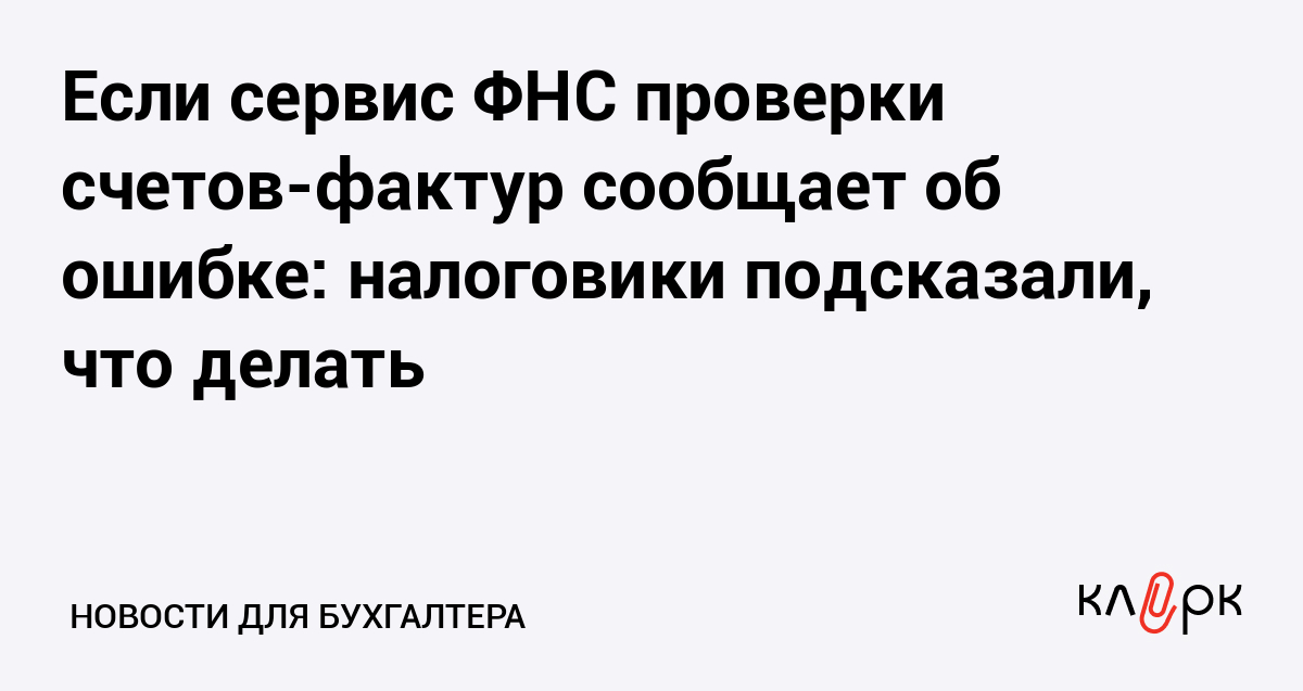 Если сервис ФНС проверки счетов-фактур сообщает об ошибке: налоговики подсказали, что делать