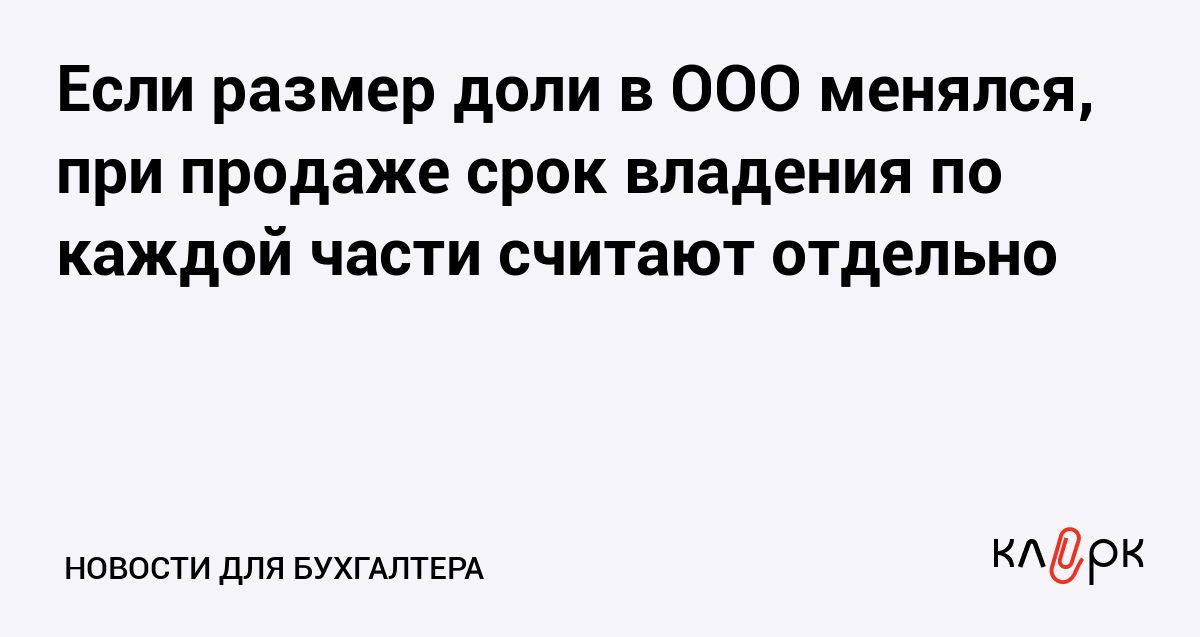 Если размер доли в ООО менялся, при продаже срок владения по каждой части считают отдельно