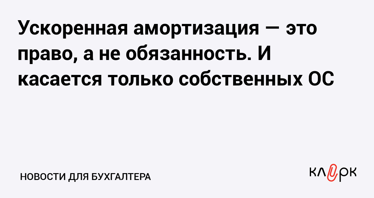 Ускоренная амортизация — это право, а не обязанность. И касается только собственных ОС