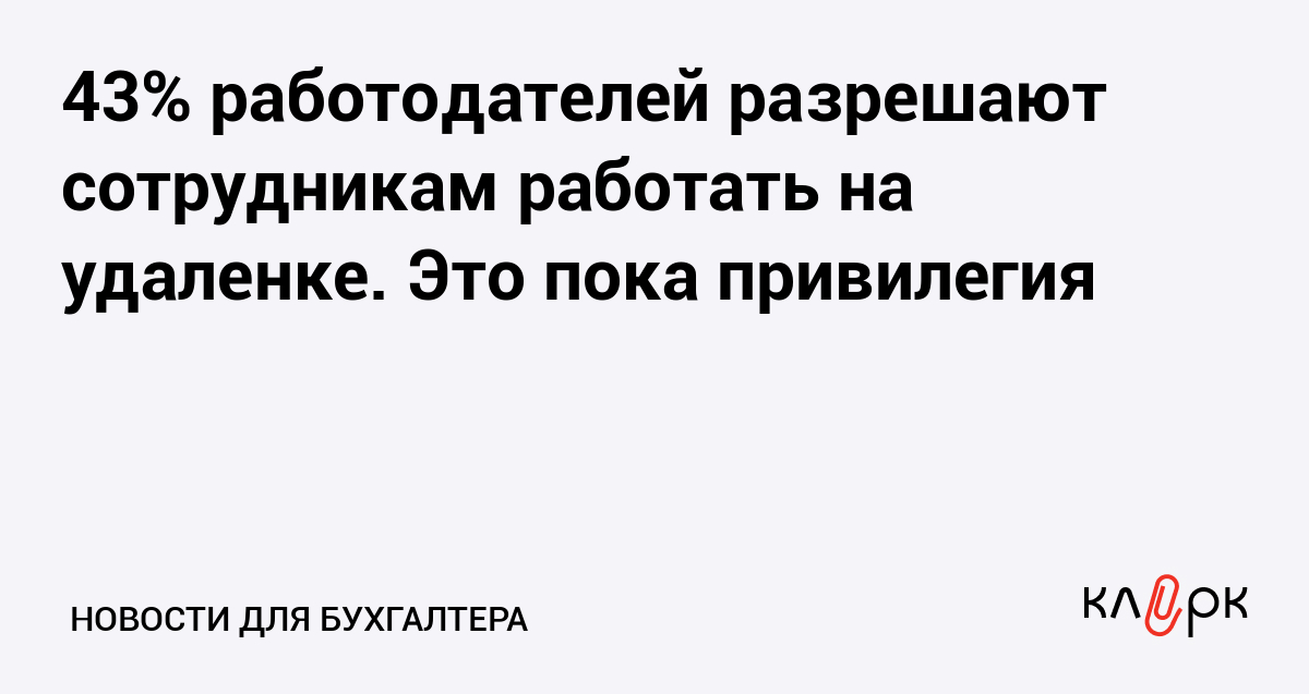 43% работодателей разрешают сотрудникам работать на удаленке. Это пока привилегия