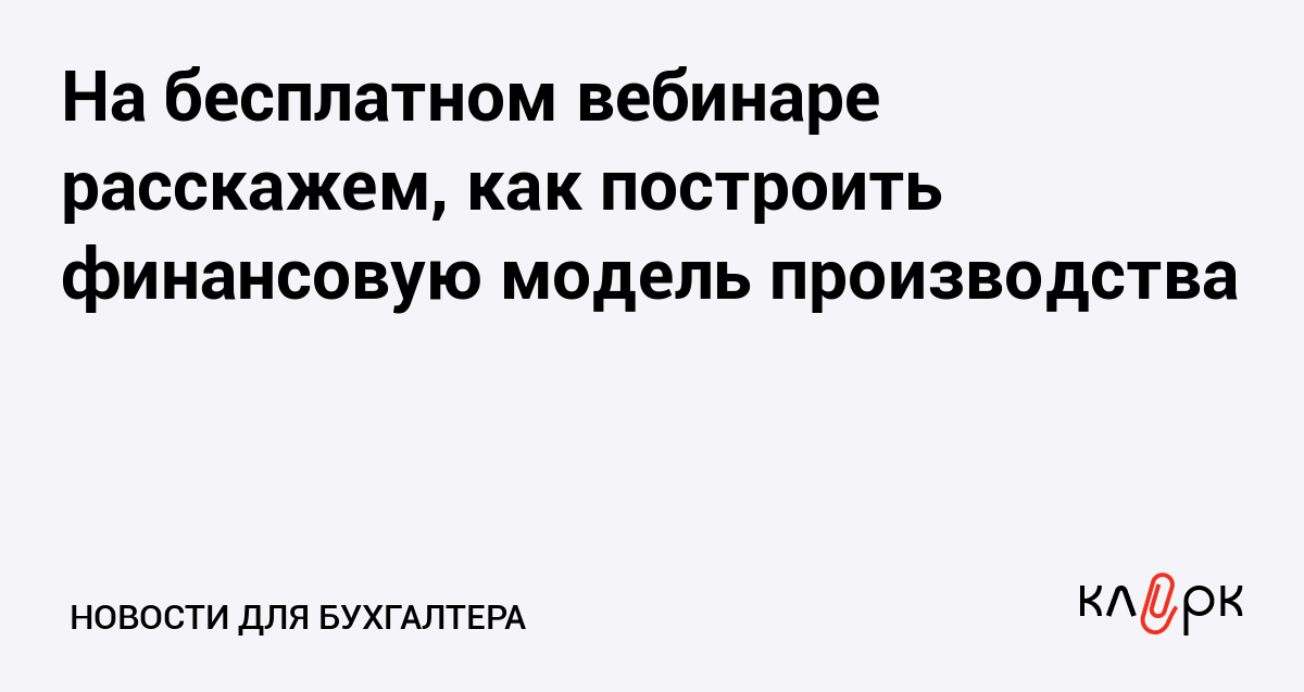 На бесплатном вебинаре расскажем, как построить финансовую модель производства