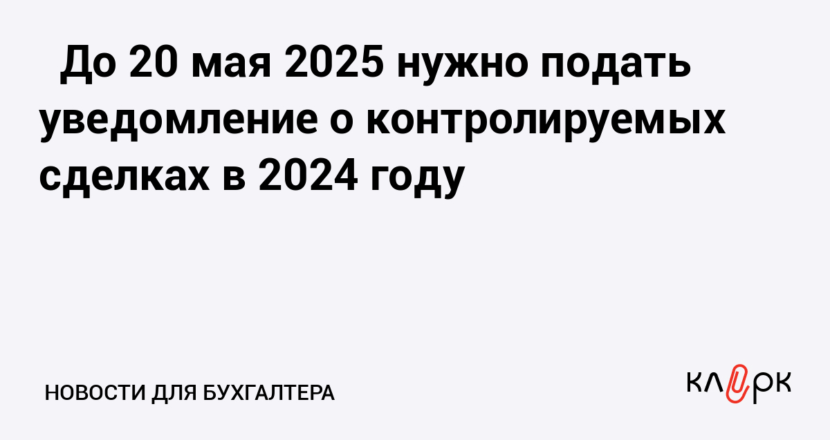 ⏳ До 20 мая 2025 нужно подать уведомление о контролируемых сделках в 2024 году