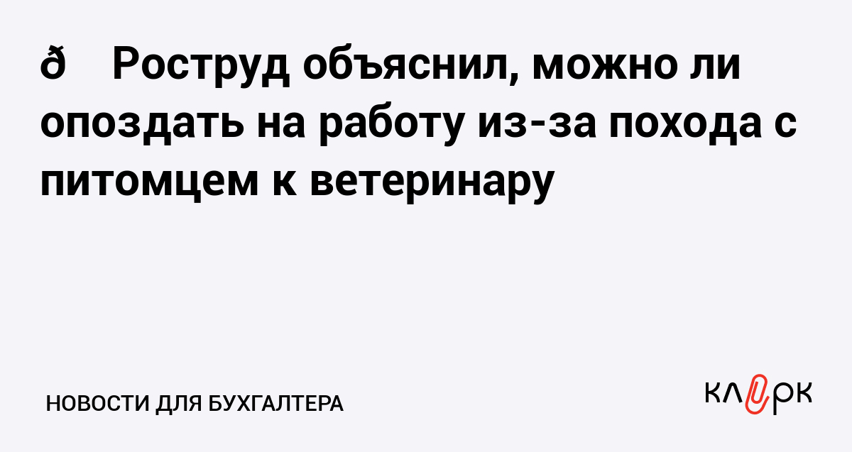 Сотрудник опоздал на работу из-за того, что ему пришлось везти домашнее животное к ветеринару. Представители Роструда считают, что такую причину можно считать уважительной (!).