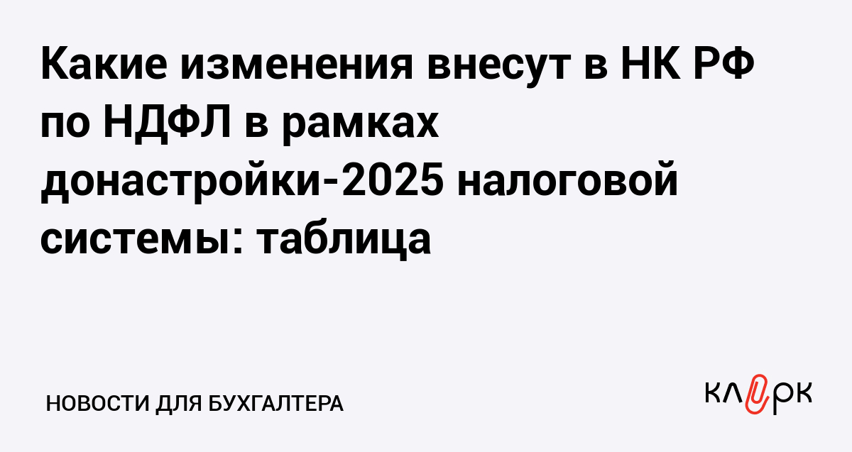 Какие изменения внесут в НК РФ по НДФЛ в рамках донастройки-2025 налоговой системы: таблица