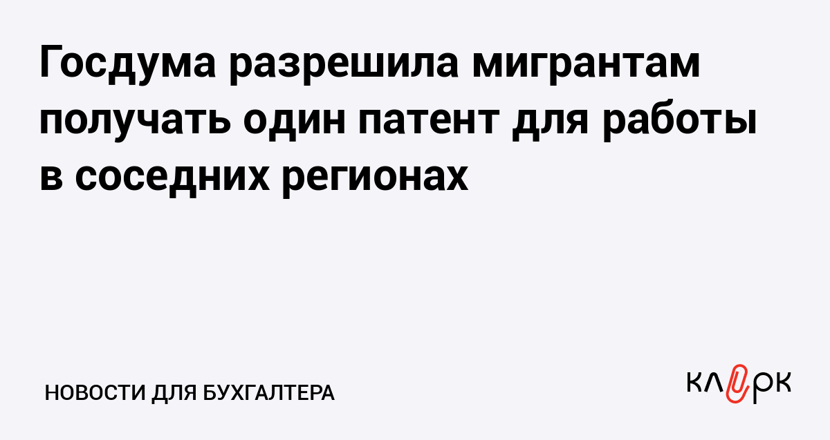 20 мая 2025 года депутаты Госдумы во втором и третьем чтениях приняли закон, который позволит трудовым мигрантам работать по одному патенту в двух соседних регионах.