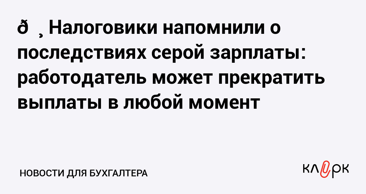 💸 Налоговики напомнили о последствиях серой зарплаты: работодатель может прекратить выплаты в любой момент