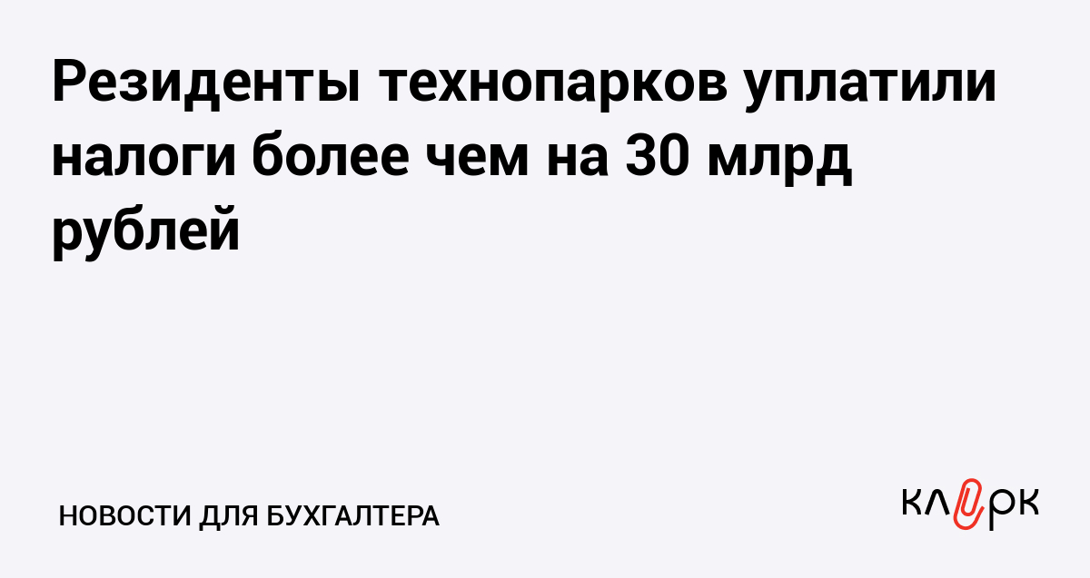 Резиденты технопарков уплатили налоги более чем на 30 млрд рублей