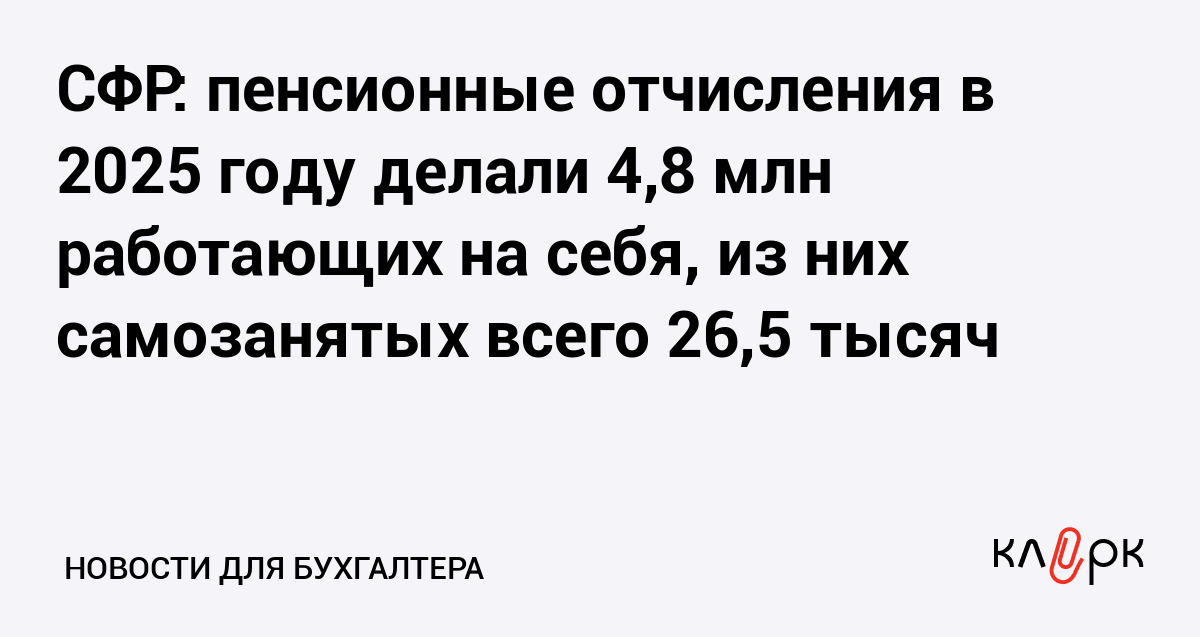 СФР: пенсионные отчисления в 2025 году делали 4,8 млн работающих на себя, из них самозанятых всего 26,5 тысяч