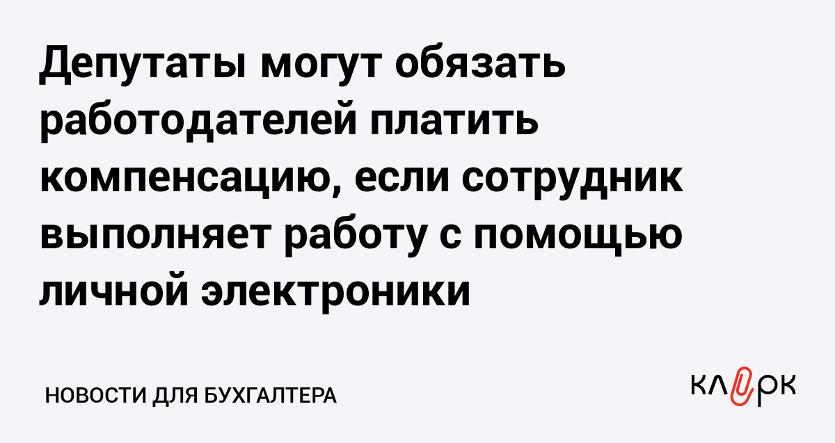 29 мая 2025 года депутаты внесли в Госдуму законопроект, который закрепит право сотрудника на компенсацию, если он использует для работы личную технику.
