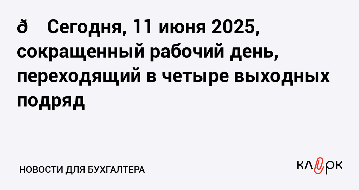 📅 Сегодня, 11 июня 2025, сокращенный рабочий день, переходящий в четыре выходных подряд