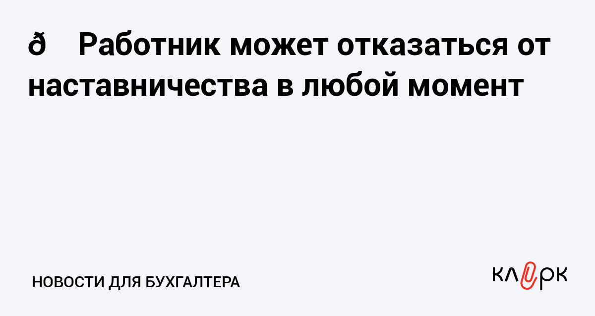 Также по ТК не предусмотрено право работодателя устанавливать для работника срок предупреждения об отказе от наставничества.