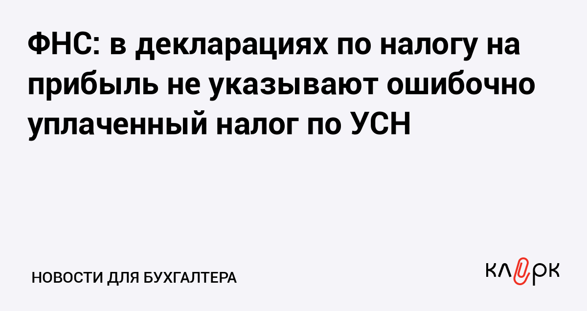 ФНС: в декларациях по налогу на прибыль не указывают ошибочно уплаченный налог по УСН