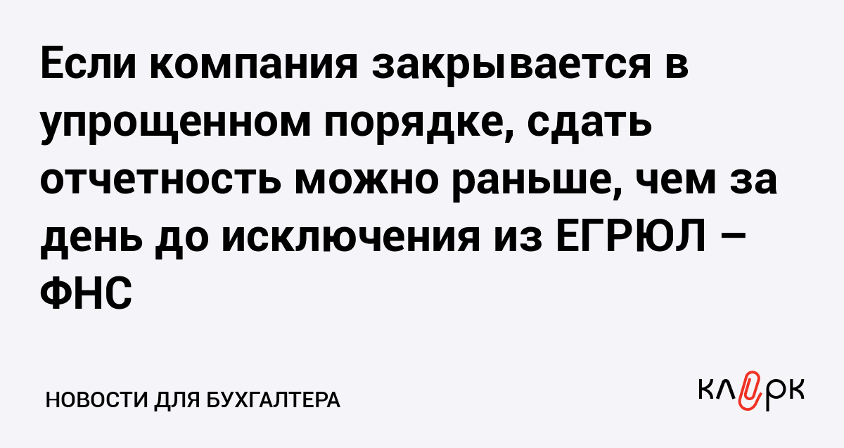 Если компания закрывается в упрощенном порядке, сдать отчетность можно раньше, чем за день до исключения из ЕГРЮЛ – ФНС