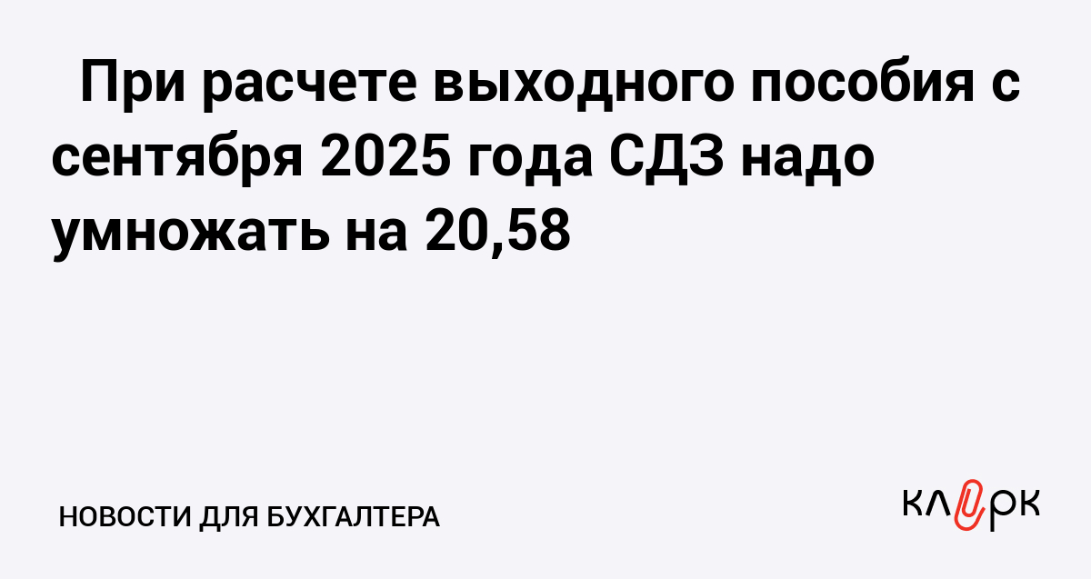 ❗ При расчете выходного пособия с сентября 2025 года СДЗ надо умножать на 20,58