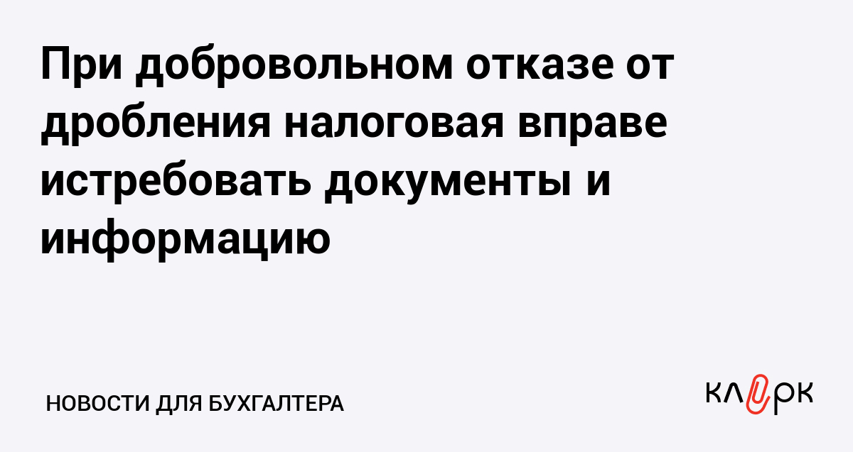 При добровольном отказе от дробления налоговая вправе истребовать документы и информацию