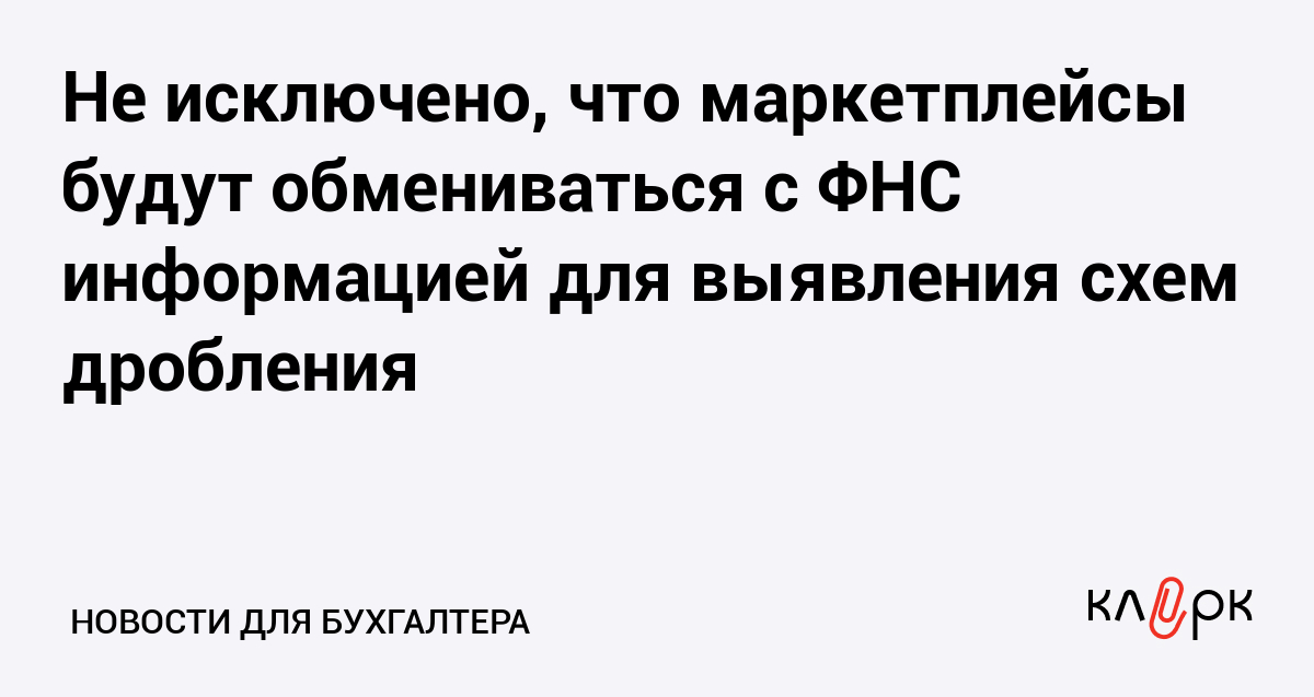 Не исключено, что маркетплейсы будут обмениваться с ФНС информацией для выявления схем дробления