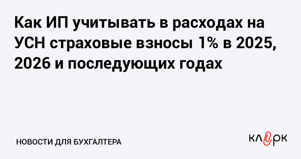 Как ИП учитывать в расходах на УСН страховые взносы 1% в 2025, 2026 и последующих годах