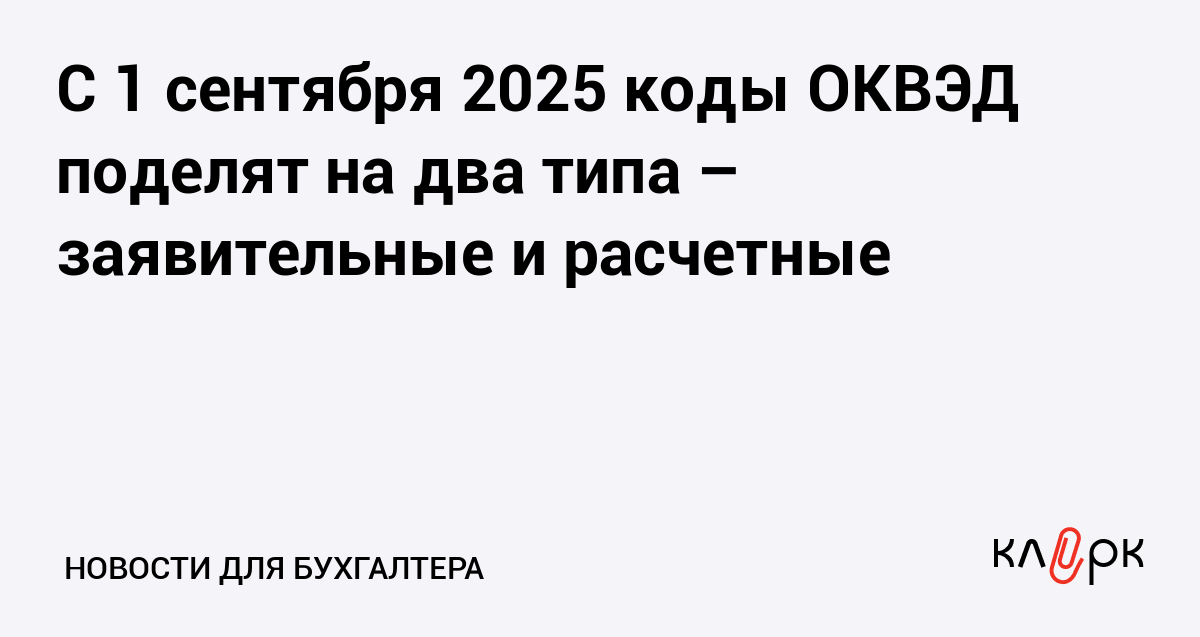 С 1 сентября 2025 коды ОКВЭД поделят на два типа – заявительные и расчетные