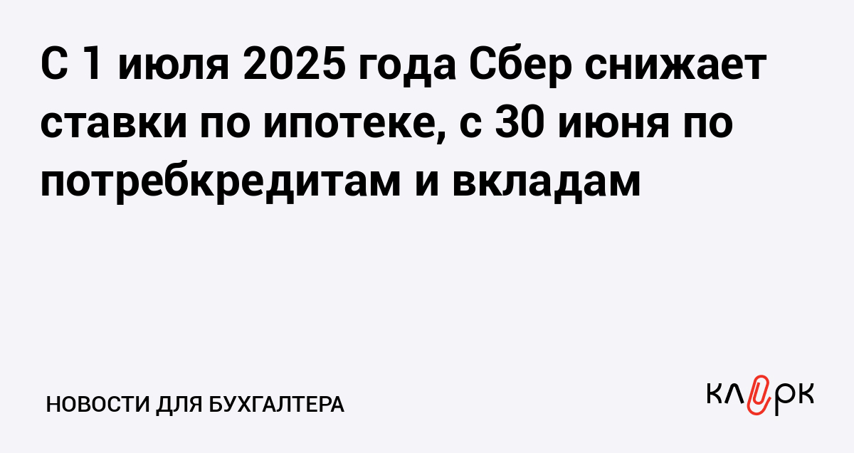 С 1 июля 2025 года Сбер снижает ставки по ипотеке, с 30 июня по потребкредитам и вкладам