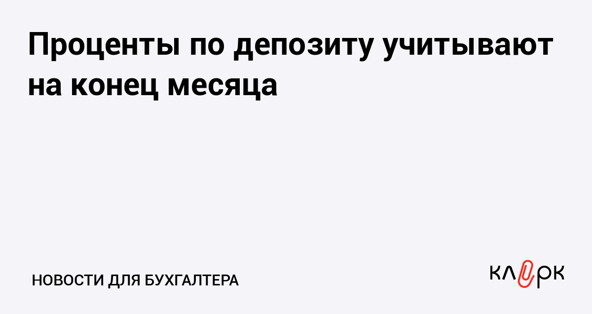 Если срок действия депозита приходится более чем на один отчетный (налоговый) период, при методе начисления проценты учитывают на конец каждого месяца этого отчетного (налогового) периода, поясняет эксперт в сервисе «Клерк.Консультации».