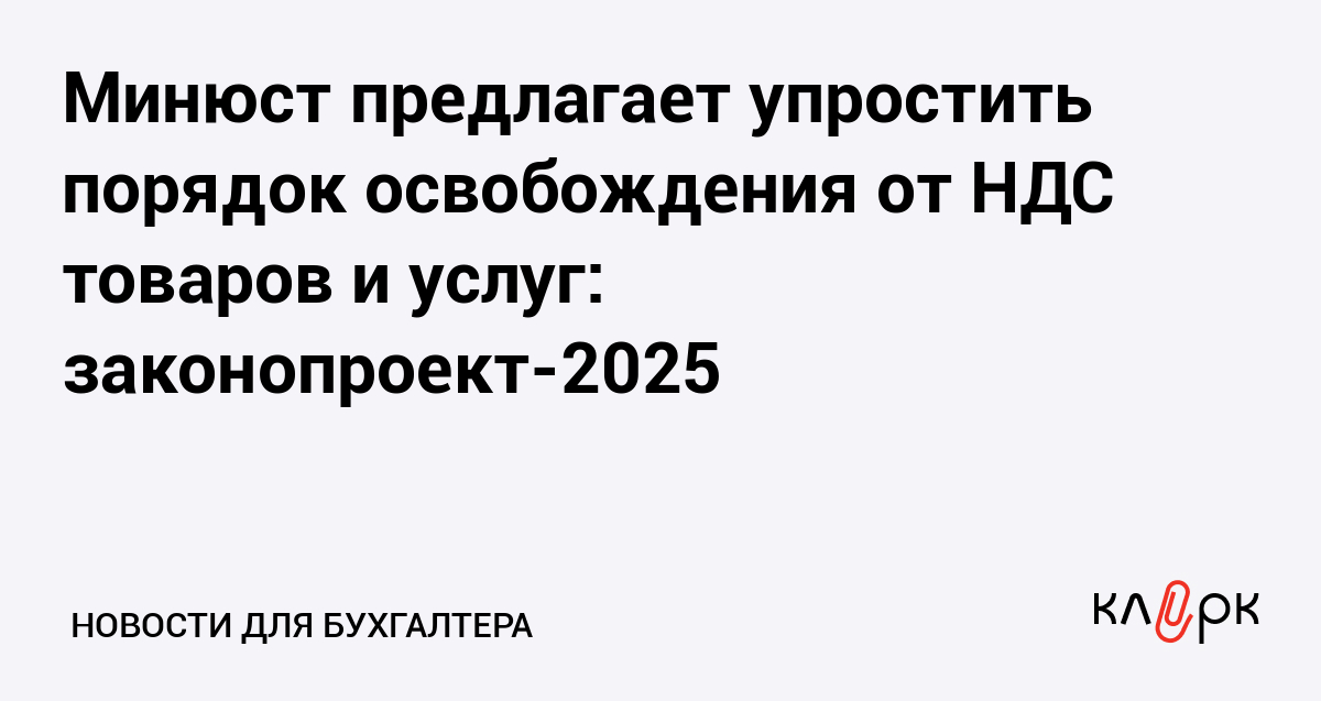 Минюст предлагает упростить порядок освобождения от НДС товаров и услуг: законопроект-2025