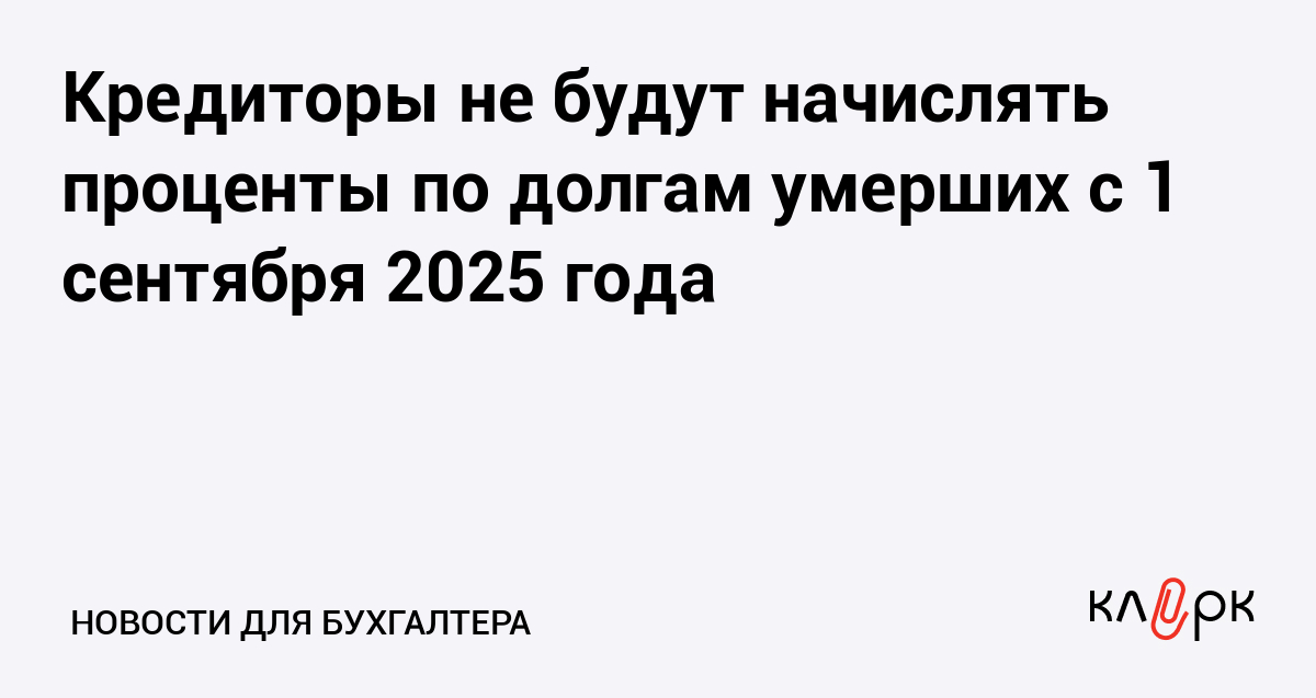 Кредиторы не будут начислять проценты по долгам умерших с 1 сентября 2025 года