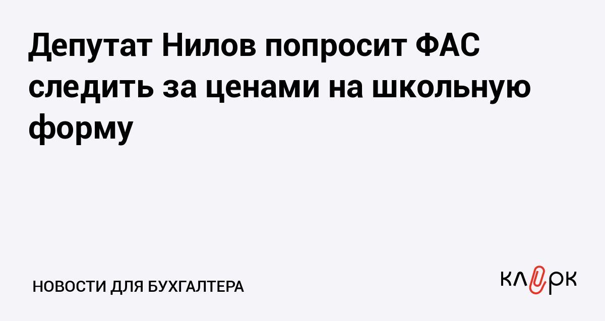 Депутат Нилов попросит ФАС следить за ценами на школьную форму