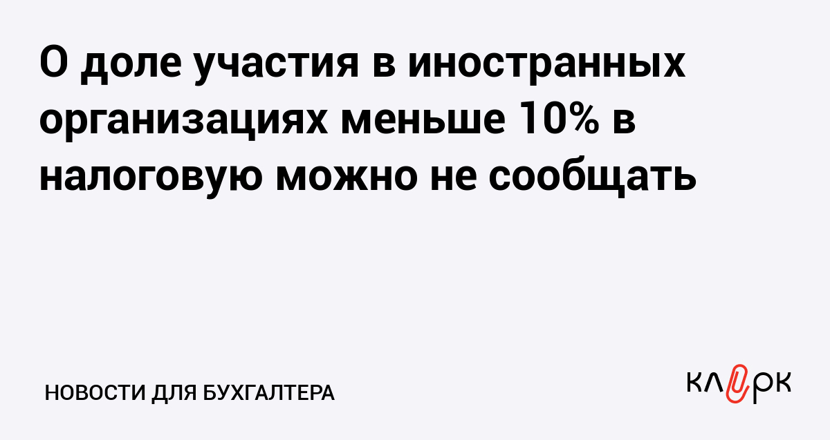 О доле участия в иностранных организациях меньше 10% в налоговую можно не сообщать