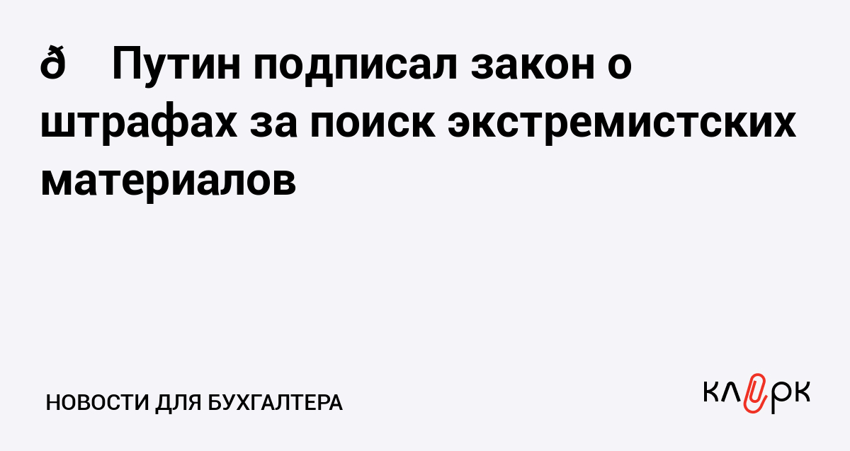 🔍 Путин подписал закон о штрафах за поиск экстремистских материалов