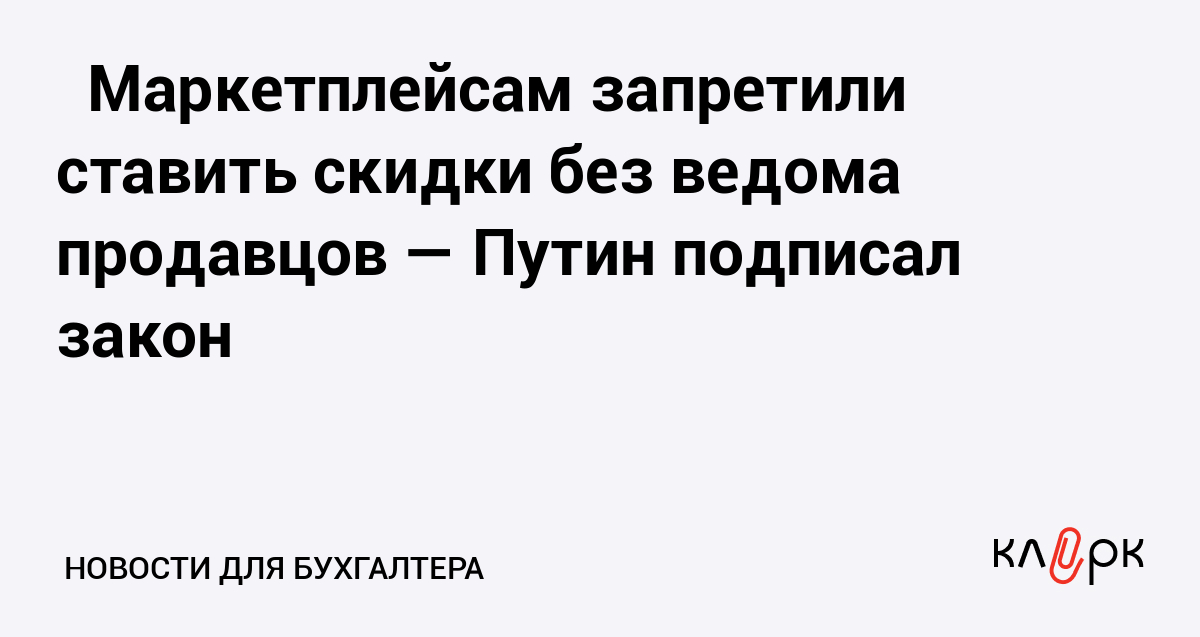 ❌ Маркетплейсам запретили ставить скидки без ведома продавцов — Путин подписал закон