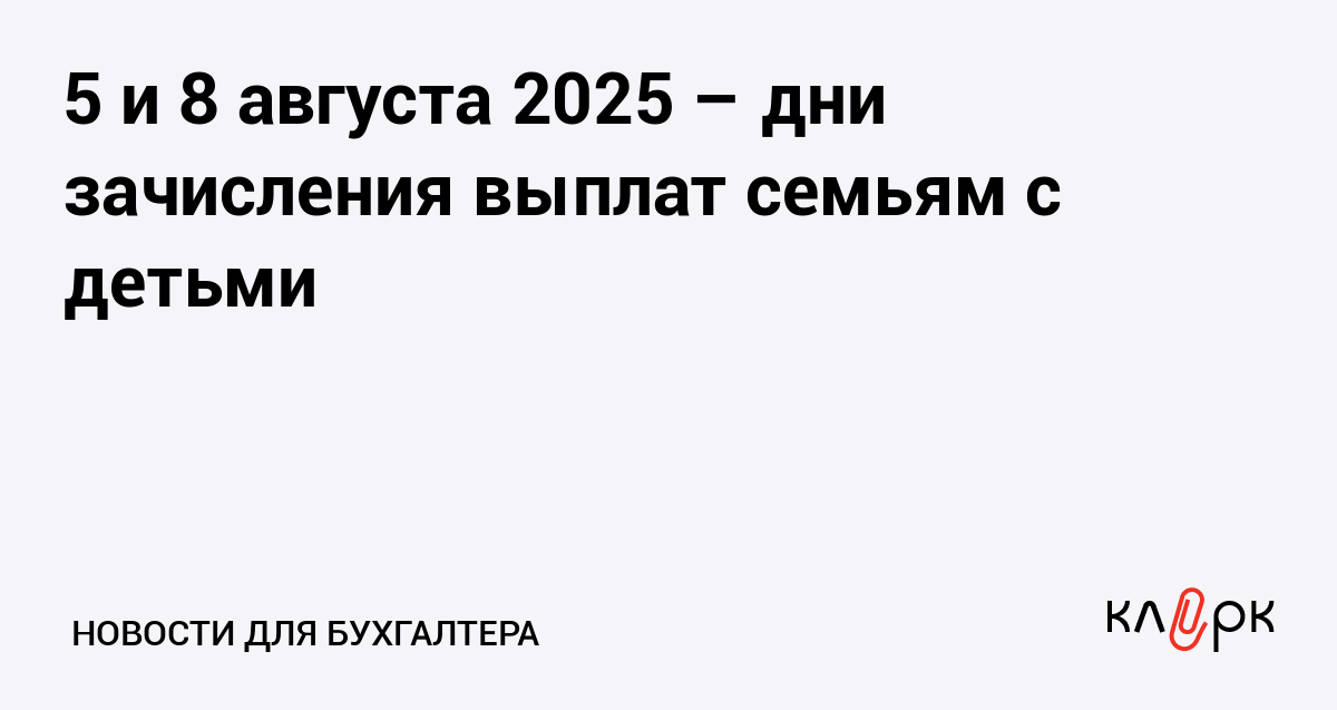 5 и 8 августа 2025 – дни зачисления выплат семьям с детьми