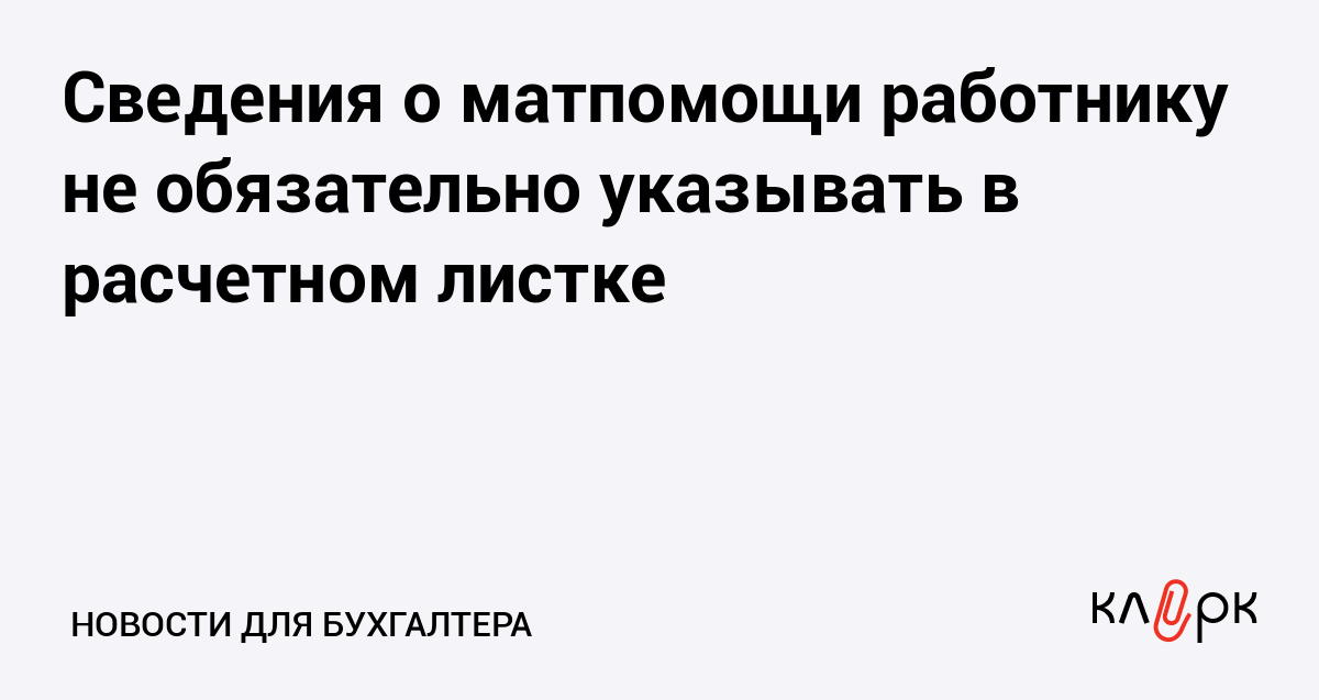 Сведения о матпомощи работнику не обязательно указывать в расчетном листке