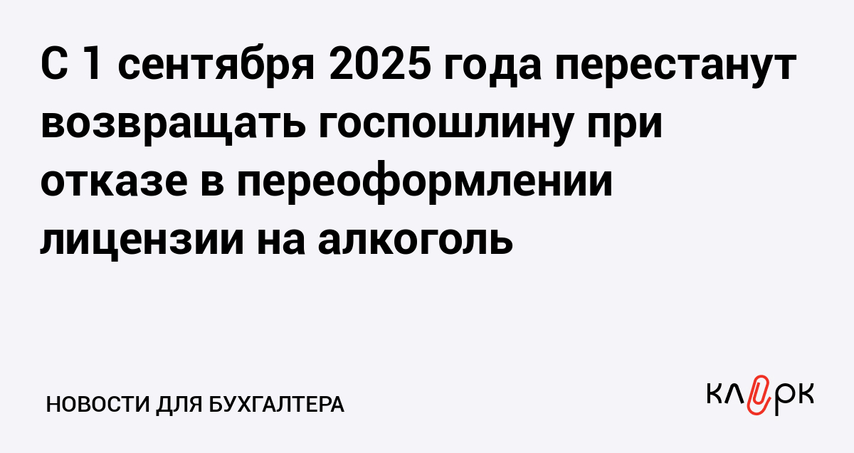 С 1 сентября 2025 года перестанут возвращать госпошлину при отказе в переоформлении лицензии на алкоголь